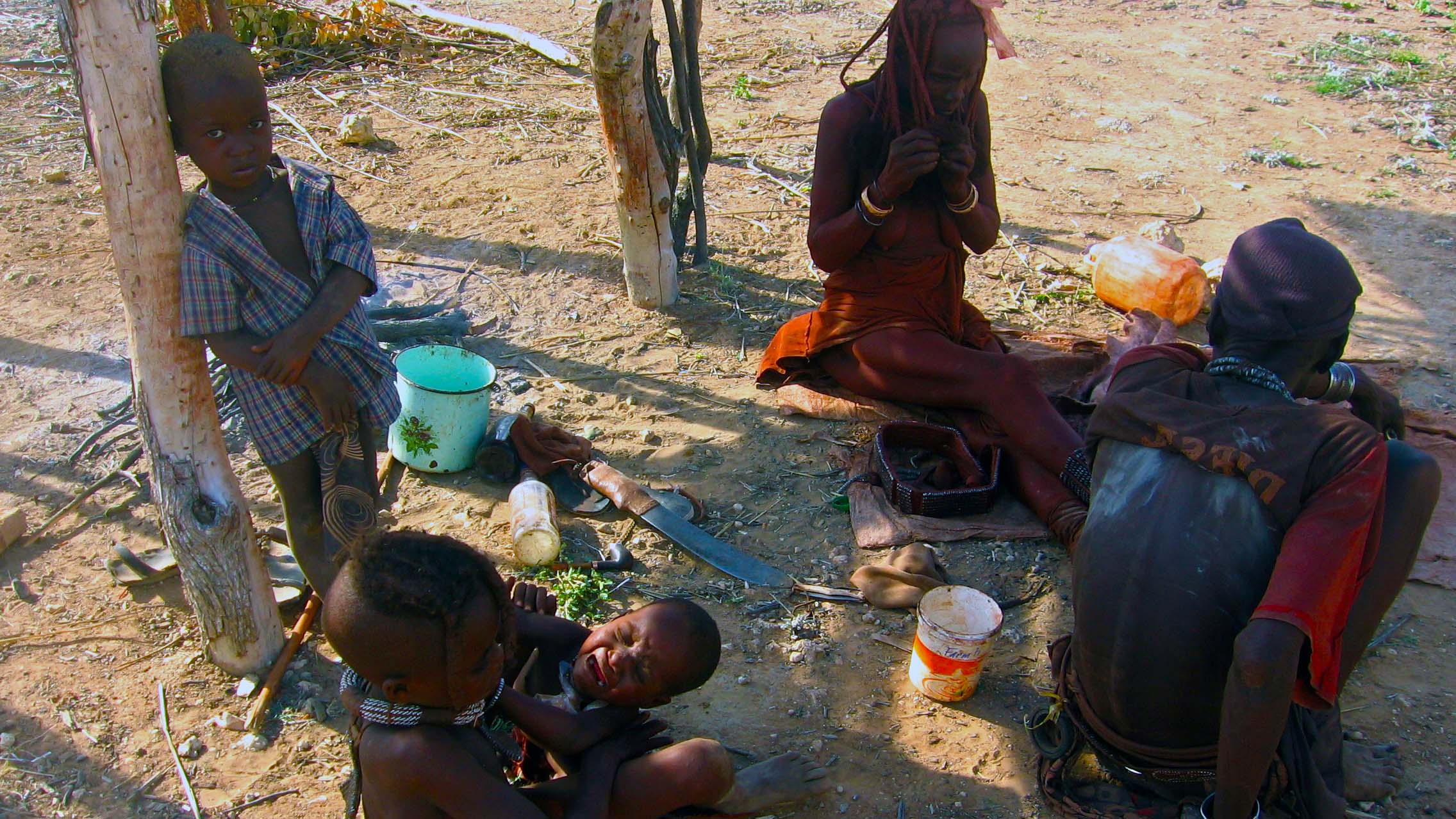 Opuwo’da irili ufaklı birçok Himba köyü var. Bizim gittiğimiz üç haneli bir köydü. Ve sanki bir film setindeydik. Böyle bir yaşamın gerçekliğini kabul etmek kolay değildi, elimizde fotoğraf makineleri, cebimizde telefon olan bizler için. Ağaçlardan böcek toplamak, internetten yemek sipariş etmeye hiç benzemiyordu. Beğenmeyip tabağın kenarına ayırdığımız kerevizi, enginarı hiç görmeyen ve yemediğimizden bir hafta buzdolabında kalan, sonra da koktuğu için çöpe attığımız yemekleri bulamayan insanlardı bunlar. Ama biz anlayamazdık. Bizim için buradaki her şey rol icabıydı.