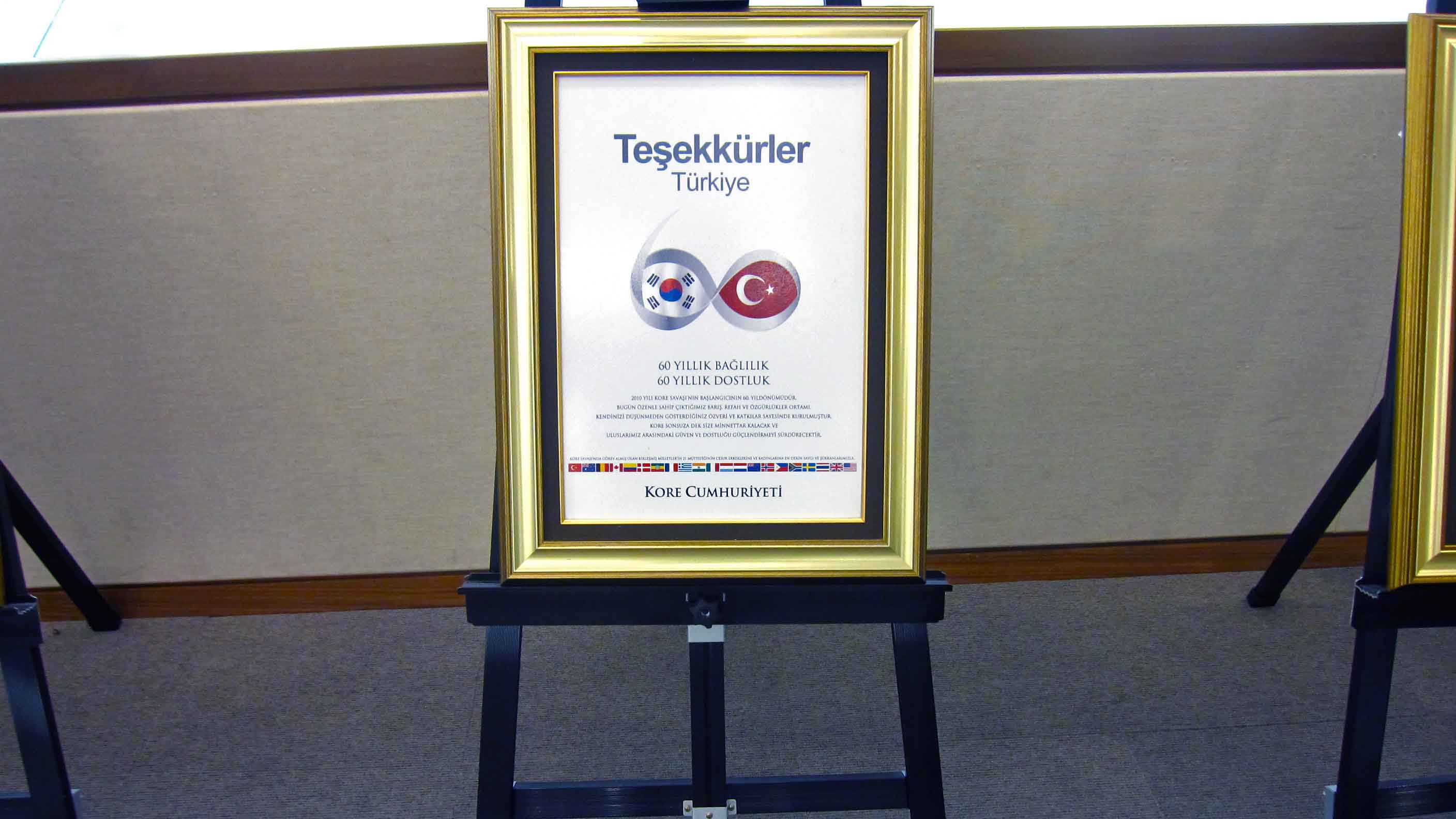 Mezarlıkta, savaşla ilgili belge ve dokümanların sergilendiği ve sinevizyon gösterisi yapılan bir salon var. Salonda gösterilen belgeselde dil seçeneği olarak Korece, İngilizce, Çince ve Japonca’nın yanında Türkçe de var. Mezarlık hakkında bilgi veren broşürler de aynı dil seçenekleriyle basılmış.