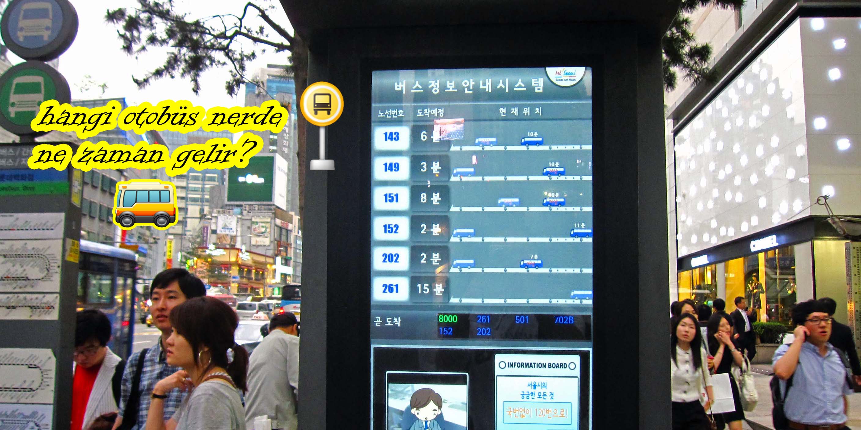 Duraklarda hangi otobüsün nerede olduğunu gösteren elektronik tabelalar var. GPS sistemiyle kontrol sağlanıyor. Otobüsün hat numarası, kaç dakika sonra geleceği, ondan sonraki otobüslerin nerede olduğu dakika dakika yazıyor.