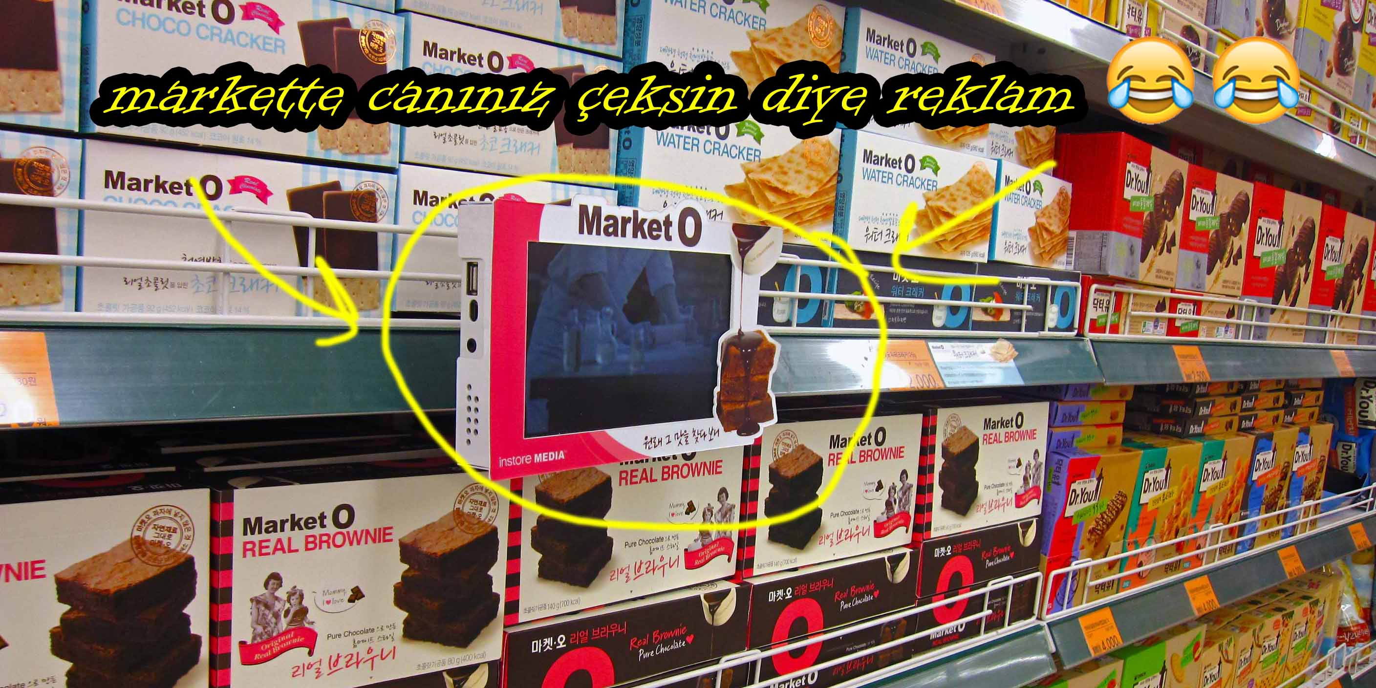 Her tarafta LCD ekranlar var. Sanki nerede boş bir yer bulsak da bir LCD koysak diye düşünmüşler. Reklam yayınlayan dev LCD’ler var, özellikle alışveriş merkezlerinde dokunmatik reklam panoları, otobüs ve metro duraklarında e-dergi okuyabileceğiniz dokunmatik ekranlar görebilirsiniz. Market raflarına ürünlerin reklam filmlerinin gösterildiği küçük ekranlar yerleştirmişler.